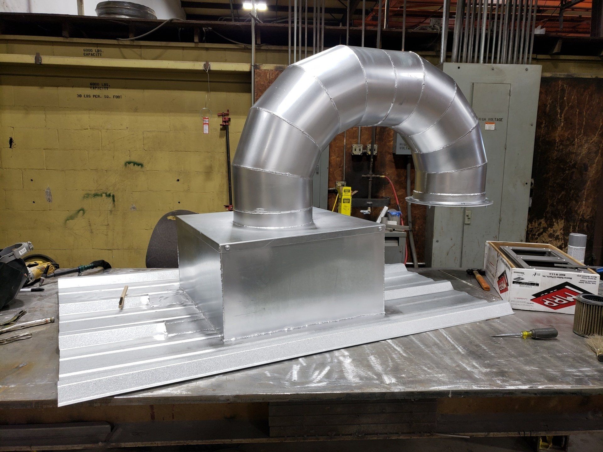 We provide sheet metal services using Mild Steel, Stainless Steel, and Aluminum. We provide these services by the process of Shearing, Laser Cutting, Bending, Rolling, and Welding. Some examples of these services include Counter Tops, Ductwork, Chimney Caps, and Production Equipment.